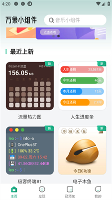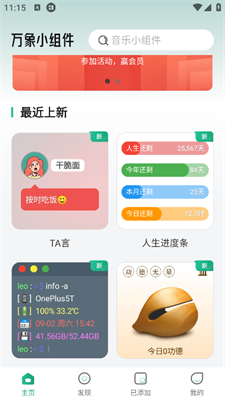 热门组件、最新组件会直接在首页进行推送,组件一键添加使用十分方便,支持用户自定义对组件的背景、大小、颜色等进行调整,对不同功能、类型的组件进行了细致的划分,用户需要什么轻松即可筛选出来。