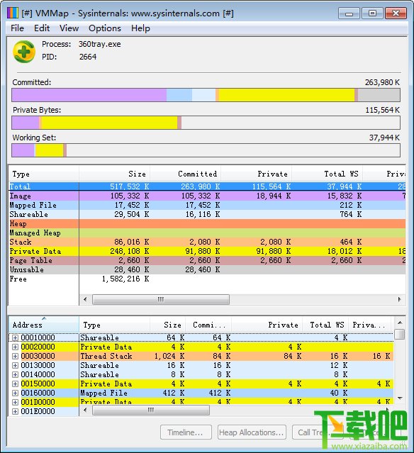 VMMap是一个免费的工具,可以用来分析应用程序使用虚拟和物理内存的情况。 VMMap对程序员是非常有用的。如果您在寻找免费的工具来理解和优化您的应用程序的内存使用量 ,那么你可以尝试VMMap。
