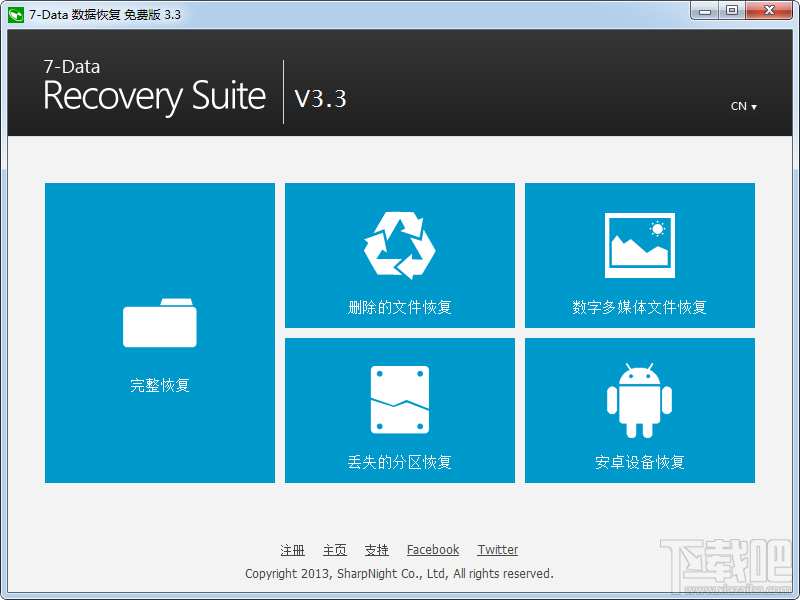 7Data Recovery Suite中文版是一款Win8界面风格的多功能免费恢复删除文件软件,可以从硬盘、 内存卡、 闪存驱动器和安卓设备中恢复已丢失/已删除的照片、 文件、 分区和更多的相关文件。7Data Recovery Suite作为一款专业的数据恢复软件,这款7-Data Recovery Suite绝对值得您的信赖!因为这款7-Data Recovery Suite拥有删除的文件恢得复、完整恢复、丢失的分区恢复和数字多媒体文件恢复4大栏目,能够帮助用户轻松的硬盘、内存卡、 闪存驱动器和移动电话中恢复已丢失/已删除的照片、视频、文件、分区和更多的相关文件,洗完对您有所帮助!
