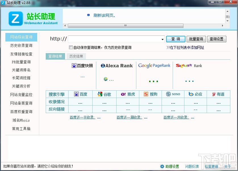 (1)网站收录查询,速度超快,支持批量查询,支持保存每天查询结果,支持查看查询历史;