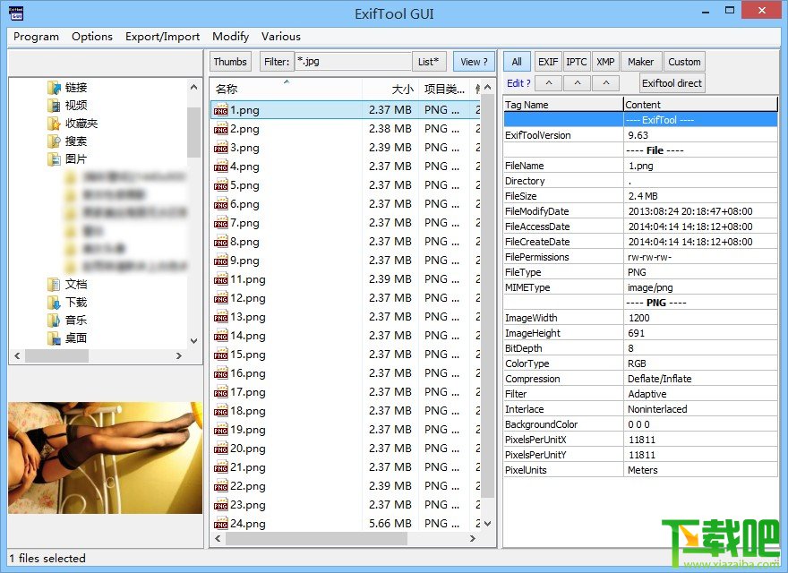 ExifTool GUI中文版是exiftool图像界面版本,但ExifTool GUI要依赖exiftool.exe才能正常运行。下载吧提供的ExifTool GUI中文版已经集成exiftool.exe,下载解压运行ExifToolGUI.exe即可使用。ExifTool GUI通过exiftool来读取数码相片的信息,支持读取EXIF, GPS, IPTC, XMP, JFIF, MakerNotes, GeoTIFF, ICC Profile, Photoshop IRB, FlashPix, AFCP, ID3等;支持写入EXIF, GPS, IPTC, XMP, JFIF, MakerNotes, GeoTIFF, ICC Profile, Photoshop IRB, AFCP等。