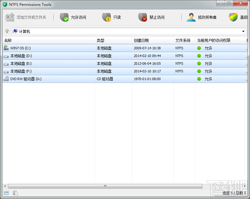 NTFS Permissions Tools是一款实用的图形化NTFS权限设置工具, 支持批量操作权限备份/恢复等。利用NTFS Permissions Tools可以很方便的在NTFS文件系统下设置文件、文件夹权限,更改所有者,权限复制粘贴,备份恢复,导出导入等功能。NTFS安全权限可以极大地增强了系统安全性,巧妙的设置NTFS权限甚至可以打造一个可以防病毒,防删除,只有你自己可以访问、读写的私密文件夹,用来存放一些重要的文件那是非常方便的。