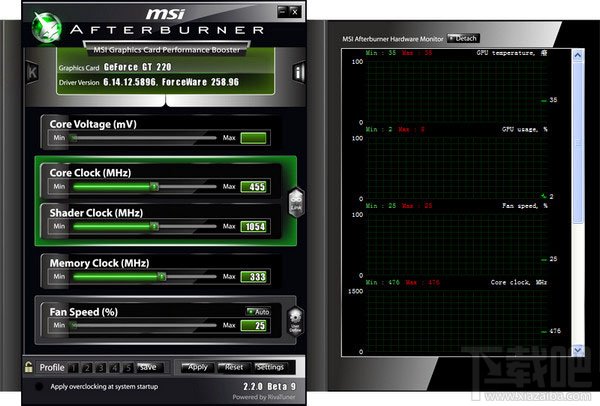 Afterburner是微星基于RivaTuner内核开发的一款显卡辅助工具,凭借简单快捷、功能强大的特点吸引了不少用户,并且这是一款A/N显卡通吃的工具,所以在玩家中口碑一直不错。