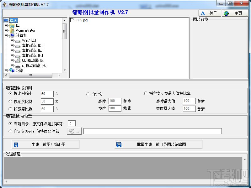 (3)支持单个图片缩略图生成和批量自动生成目录下的所有图片的缩略图;