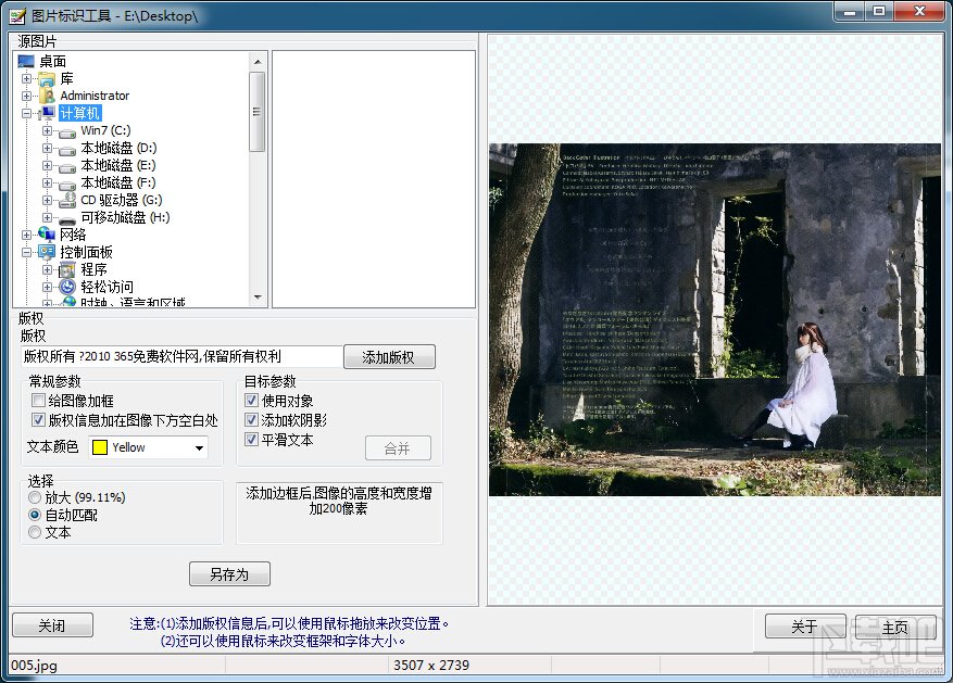 (2)添加后的版权信息可以用鼠标拖动来改变位置、大小;