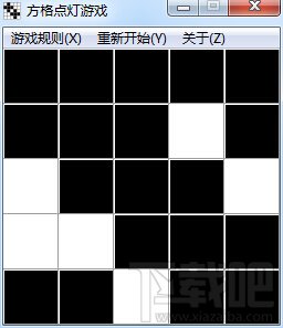 方格点灯游戏单机版是一个简单但挺有趣的小游戏。点击一个格子,它和周围四个格子的颜色都会由白变黑或由黑变白。当25个格子全变成黑色时,游戏胜利!加油哦!