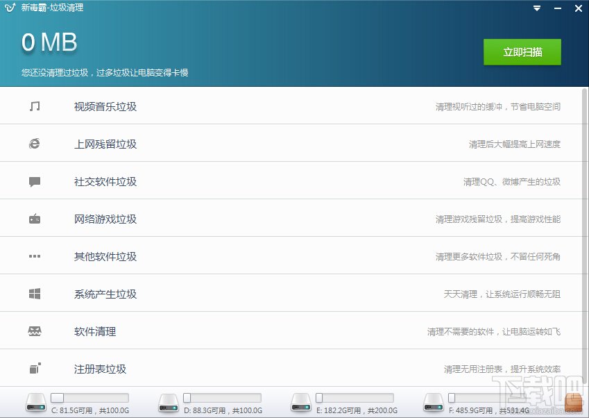 新毒霸垃圾清理独立绿色版本版特点: