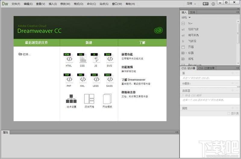 Adobe Dreamweaver CC 2014新功能:现代化平台支援使用HTML、CSS 和JavaScript 编写专案。以 PHP 开发动态页面。使用改良的程式码提示和语法色彩标示更有效地编写程式码。