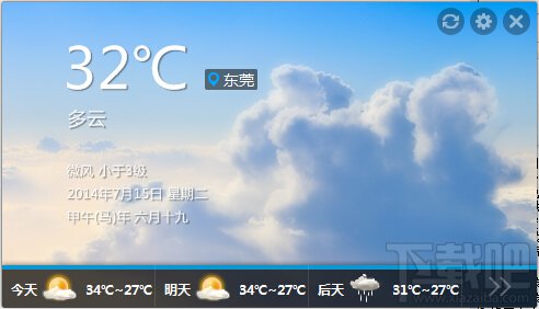365天气能够自动测出你所在的城市,并会在主界面显示此刻的温度、天气状况、空气指数、风速、日期、今明后三天天气状况,是一款小巧的桌面天气工具。