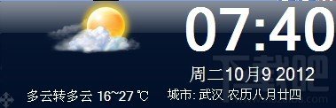 运行后,会在桌面右上角显示当天天气信息,并显示当前的时间。