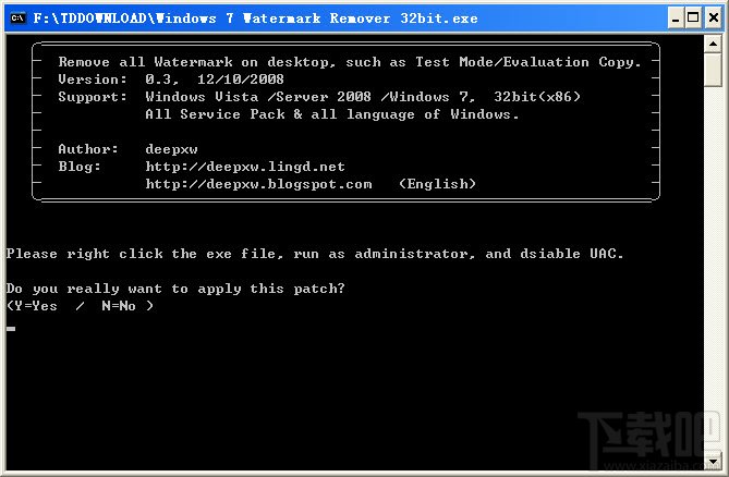 如果系统没有激活在右下角会显示一些提示信息,如何把它这些信息水印给去掉呢,借助此款工具可以实现.如果你是32微操作系统,运行X86即可,按一个”Y“等待数秒,提示重启即可;如果你是64位,那就运行X64文件