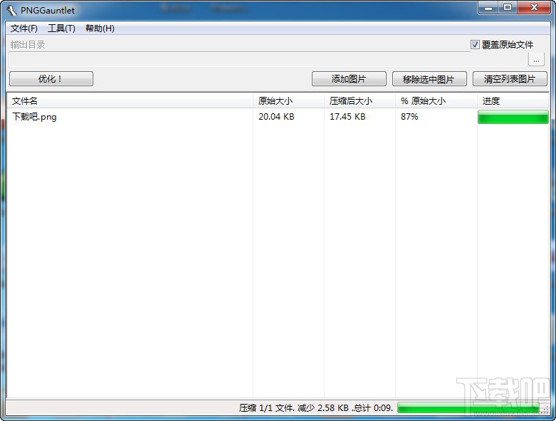 PNGGauntlet汉化中文版是一款优秀的PNG压缩工具,实现批量PNG图片无损压缩。其实PNGGauntlet汉化版是一个外壳,集成了DeflOpt、optipng和pngout三合一png压缩引擎的工具。PNGGauntlet里的一个很好的功能是在进行批量处理的时候能够自动对多个文件进行排队处理。PNGGauntlet工具菜单里的默认选项已经是优秀(比较大)压缩设置,除非你打算保留PNG元数据、使用灰度色彩模式等等时候才更改这个值。PNGGauntlet实际上是一个前端工具,它使用三个不同的PNG优化工具(PNGOUT、OptiPNG和DeflOpt)对PNG文件进行了多次压缩,而不是通过所见的只是用一个工具。三个压缩工具的使用确实增加了压缩PNG文件所花费的时间,不过肯定生成了更小的文件。