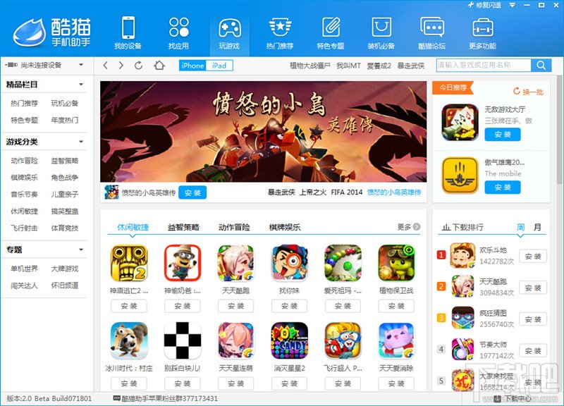 酷猫助手官方版支持一键ios7完美越狱,采用全新架构并集合海量app和ios全系固件,酷猫助手下载速度快,管理文件资源高效实用,备份还原,彻底摆脱iTunes。