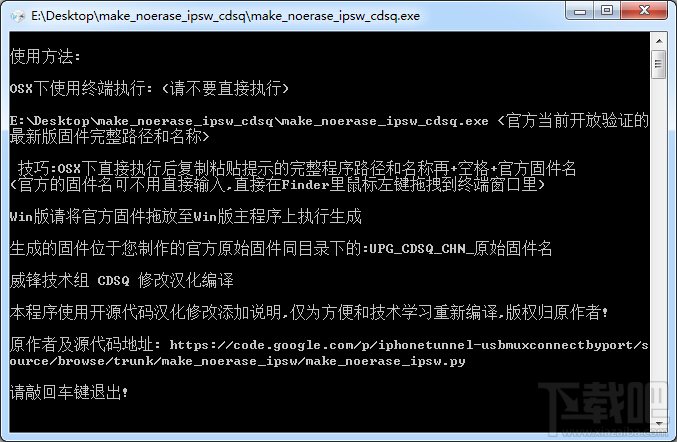 苹果设备无损固件制作工具绿色版是一款苹果设备固件处理制作工具,经过苹果设备无损固件制作工具制作的固件,重刷后具有不删除原来数据的功能。有了这个工具,再也不用担心苹果设备(iPhone/iPad/Touch)白苹果或者无限循环恢复状态,再也不用担心忘记备份数据的问题了(当然还是建议大家做好定期数据备份)。