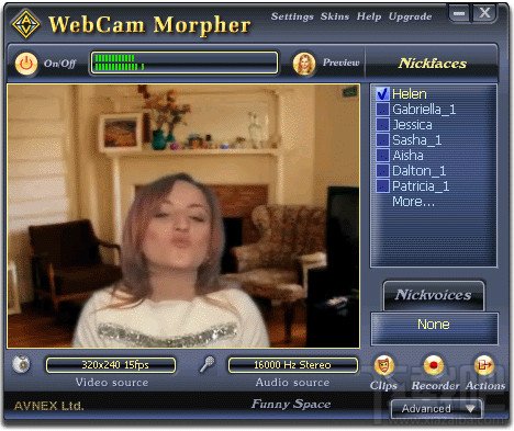 AV Webcam Morpher软件自带8种脸孔,并可以通过网络下载更多脸孔。
