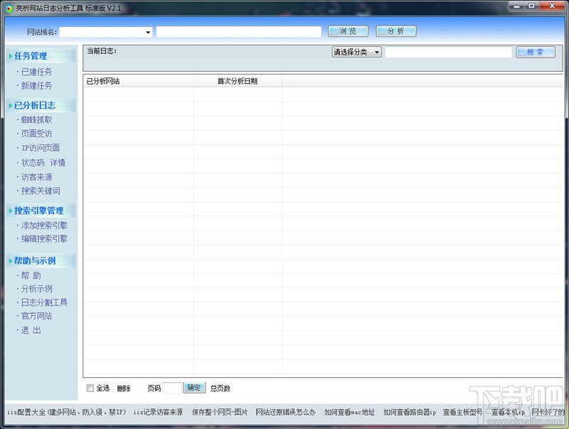 亮析网站日志分析工具绿色版是一款多功能、支持GB级大文件的iis、Apache网站日志分析软件,同时也是一款SEO工具。亮析网站日志分析软件支持 IIS 和 Apache 日志,日志格式包括 W3C、IIS、NCSA 等。分析速度快,有分析结果浏览功能,可随意浏览所有已经分析过的日志,同时也支持删除部分或所有分析过的日志,是站长网站流量统计和蜘蛛抓取的好帮手。