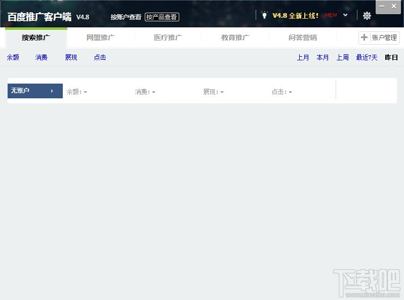 百度推广客户端官方版是一款可供百度搜索推广、网盟推广、医疗推广、教育推广和问答营销用户免费使用的账户管理软件,是您桌面上的百度推广大管家。百度推广客户端不仅能助您高效地处理海量物料,更是您的跨产品多账号管理平台和优化决策平台,助您轻松快捷地完成整套账户管理优化工作。