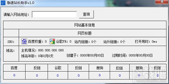 急速站长助手绿色版是一款实用的站长辅助工具,也是一款便捷的网站SEO分析器,可获取某站点的PR值,百度权重,内链外链数量情况。急速站长助手绿色版还能获取本机完全访问该站点需要多长的时间,单位为毫秒,对主机的位置,年龄,过期时间都均能显示出来,并支持从各大搜索引擎的官方网站读取收录量,反链数,当点击该数量链接时,直接打开收录的地址。