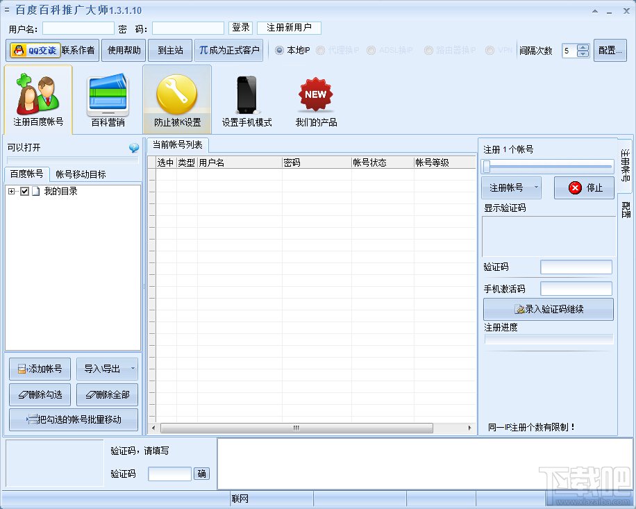 石青百度百科推广大师是一款高效百科推广工具,可以注册帐号,升级百科等级,提交百科信息等等,全能百科营销。石青百度百科推广大师包含帐号注册、帐号激活、提升等级、提交百科等等不同功能。自动换IP,可以使用ADSL模式,代理模式,路由器换IP模式,操作简单。