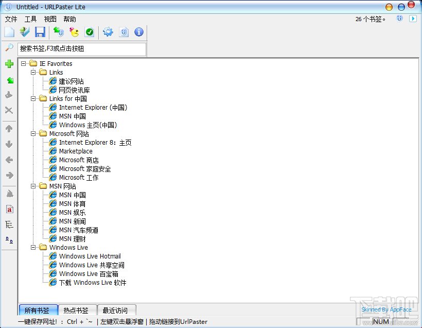 2.2 MB/2020-08-17LinkCollector中文版是一个免费的浏览器书签管理软件,软件已汉化为中文。该书签管理器将帮助您导入支持的浏览器中的书签并将它们存储在单独的数据库中。在家里或在工作,您可以在任何计算机上,使用您的书签。LinkCollector还可以与便携式浏览器和浏览器安装在系统中。LinkCollector支持的浏览器有:InternetExplorer、Firefox、GoogleChro