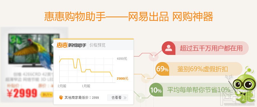 惠惠购物助手是网购达人和网购新手网购的利器,惠惠购物助手是网易推出的浏览器比价神器,在您浏览购物网站时会自动出现。当您在购物网站查看商品时,自动展示卓越、当当、新蛋等各大商城的报价、运费信息,目前已支持数码、家电、图书三个类别,让您轻松比价。当您在商品页面查看商品时,惠惠购物助手自动为您呈现商品价格走势,让您找到优秀购买时机。