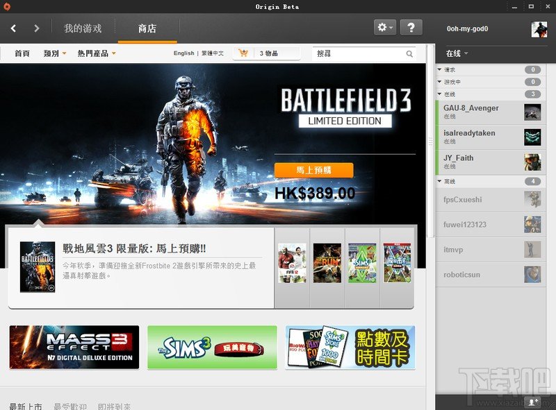 购买更方便:有了Origin,您无需再排队等候,或者支付额外的运费,在购买新游戏时,您将获得享有的快感。