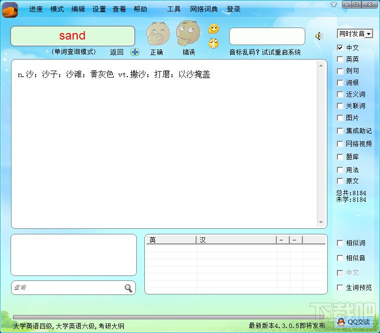 51.85 MB/2020-08-17轻轻松松背单词是款英语单词强化记忆软件,与我爱背单词这款软件比较大的不同是,轻轻松松背单词能结合光盘一起进行学习记忆。轻轻松松背单词包含单词初记、强化复习、趣味打靶、听力实战、打字神功、休闲记忆、拼词游戏、词义回想、单词筛选、