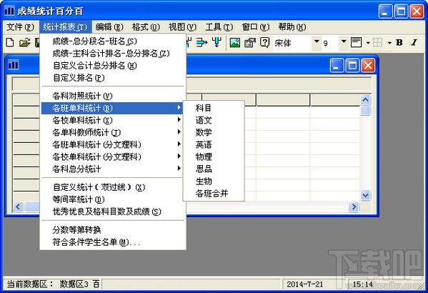 3、本软件共有18个数据区,可以导入18份考试成绩存储在软件内,可方便的选择一个数据区的数据进行各种统计。