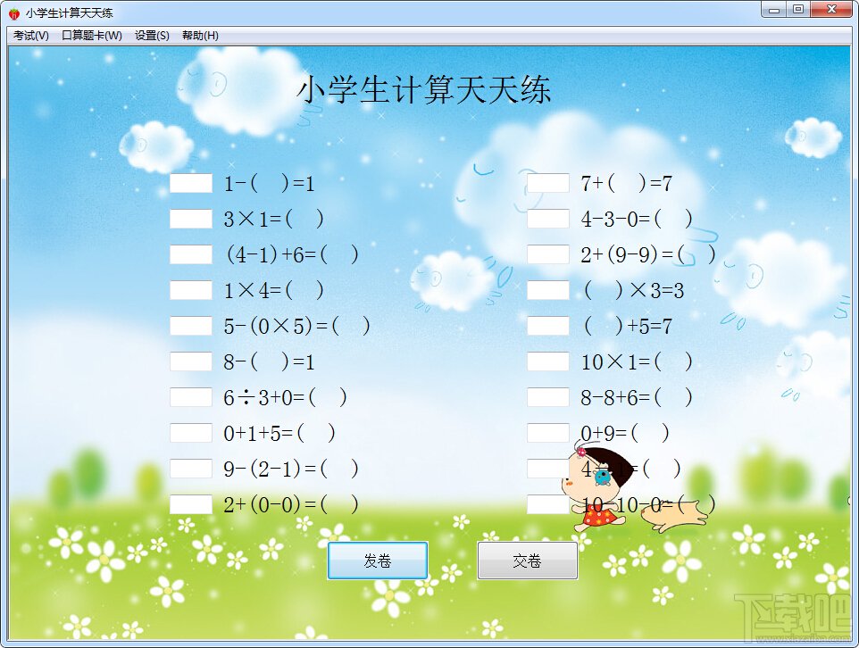 小学生计算天天练绿色版适用于学前班、小学生口算练习。系统提供屏幕练习、制作口算题卡打印练习(保护儿童视力)两种口算练习方式。小学生计算天天练自动出题、自动打分。屏幕背景自动轮换并可自由定制,增加孩子练习兴趣。练习数值范围自由设置,题型包括形如:A±B=()、A±()=C、()±B=C、A×÷B=( )[乘法表内]、( )×÷B=C[乘法表内]、A×÷( )=C[乘法表内]、A×÷B=( )、( )×÷B=C、A×÷( )=C、A±B±C=( )、A±×÷B±×÷C=( )、A±B±C=( )[带括号]、A±×÷B±×÷C=( )[带括号]、随机混合题型共13种题型,满足不同水平口算需要。可自动制作生成标准的口算题卡,家长再也不用为出几百道甚至上千道口算题而发愁了。