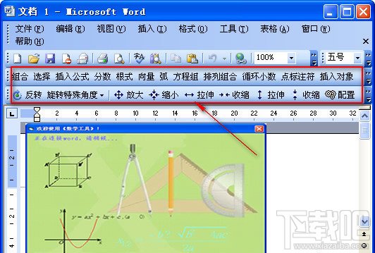 4、灵活的图形变换功能。利用《数学工具》您可以方便地对插入到文档中的图形进行平移、伸缩、旋转等几何变换。
