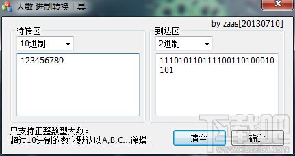 大数进制转换工具绿色版是一款进制之间的转换工具,比较大的特点是支持36进制以内的任意长度数字转换(数字长度只受编辑框长度限制),只支持正整数型大数,炒股偶10进制的数字默认以A、B、C...递增。