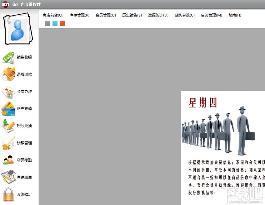 茶叶店收银管理软件界面美观简洁、简单全面、实用方便,无需培训,即可快速上手,轻轻松松完成日常经营管理中的进货、出货、库存、收银、会员管理等业务活动。