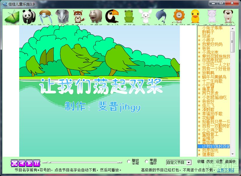 佳佳儿童乐园软件是营养丰富的“精神维生素”。精美的画面、有趣的故事会吸引孩子反复观看、记忆和思考,从而大大促进儿童大脑的发育和思维能力的提高。相信本软件是送给孩子的非常有意义的礼物,是在孩子心中播下的幸福快乐的种子,是孩子将来十分美好的童年回忆!