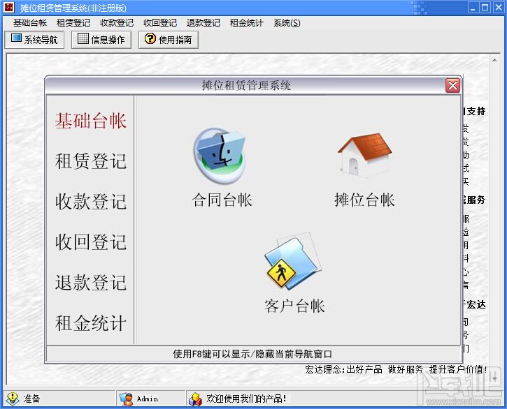 摊位租赁管理系统是一款优秀专业的对商业摊位租赁、收回、收费、退款、租金统计、租期预报等方面进行全面管理的系统。