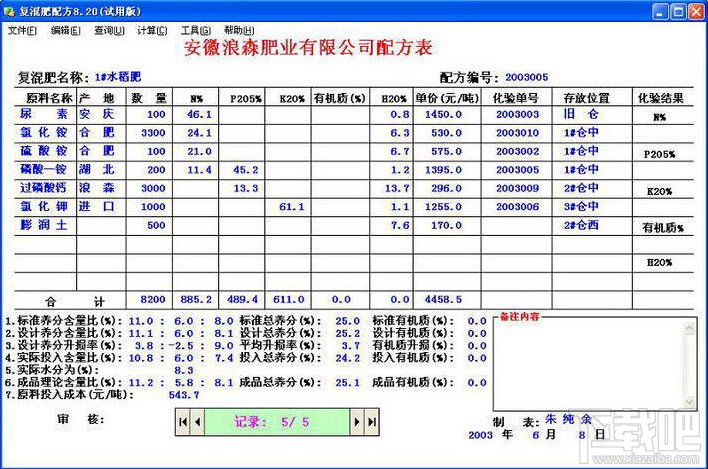 22.9 MB/2020-08-17有机无机复混肥料配方是一款优秀专业的配方管理软件,是一套集配方的添加、修改、删除、打印和查询为一体的配方计算体系,整个配方过程可以实现无键盘化、全鼠标操作(即只用鼠标即可以将配方计算中包括数值输入在内的所有功能全部完成)。一、主要功能介绍:1、基本功能:复合肥、复混肥料、有机无机复混肥料的添加计算、复制计算、修改计算和打印等。2、数据库功能:配方查询、配方排序、记录删除和配方整理等。