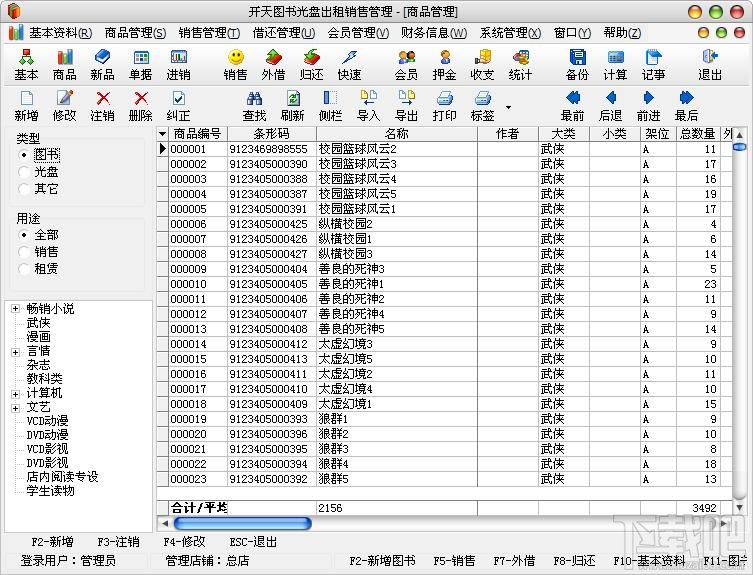 1、图书光盘分类管理,类别分为大类和小类两级,类别自由设定,可为每个大类指定不同的销售折扣、租金标准和押金标准。