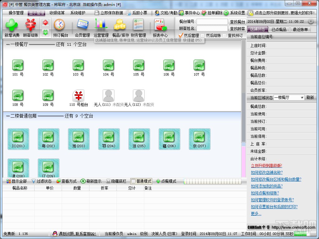 中管餐饮管理软件是一款优秀专业的适用于中小型餐饮企业的餐饮管理软件,中管餐饮管理软件是一款完全免费的餐饮管理软件,业务功能覆盖前台餐厅管理,后厨小票打印,库存日常管理,各种报表统计及日常财务管理等,完全满足中小型餐饮企业的软件管理需求.软件没有任何时间,功能限制,不仅为企业降低运营成本。