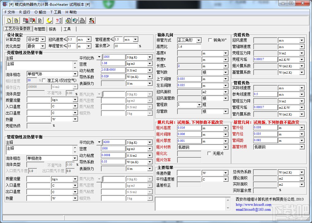 箱式换热器热力计算(BoxHeater)是一款优秀专业的行业软件,功能强大,易学易用,界面友好,方形外壳列管式换热器热力计算软件,是世界上智能化程度高到的软件。集软件技术、换热工程技术于一体,是研究、设计、制造和终端用户四方共同合作开发的软件,可用于设备报价、工程设计、设备制造。