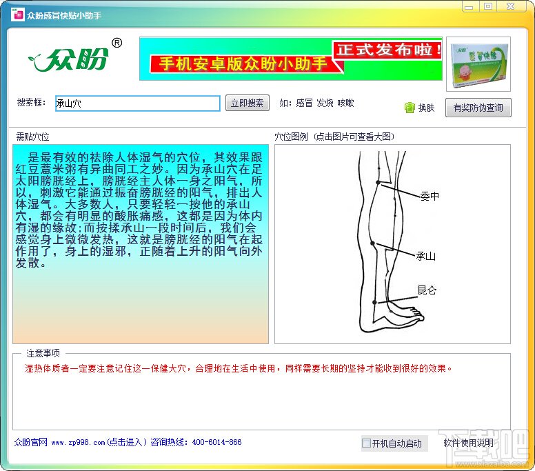 众盼感冒快贴小助手是一款优秀专业的界面友好,操作简单,能帮助顾客很好的使用感冒贴的工具,众盼感冒快贴小助手对顾客服务周到贴心,众盼感冒快贴小助手就是把感冒贴常用的一些穴位集合在一起供顾客可以很方便的查询以及使用,众盼感冒快贴小助手让复杂的穴位简单化了查询,众盼感冒快贴小助手集合了中医里面常见病所使用到的穴位以供需要时进行参考.