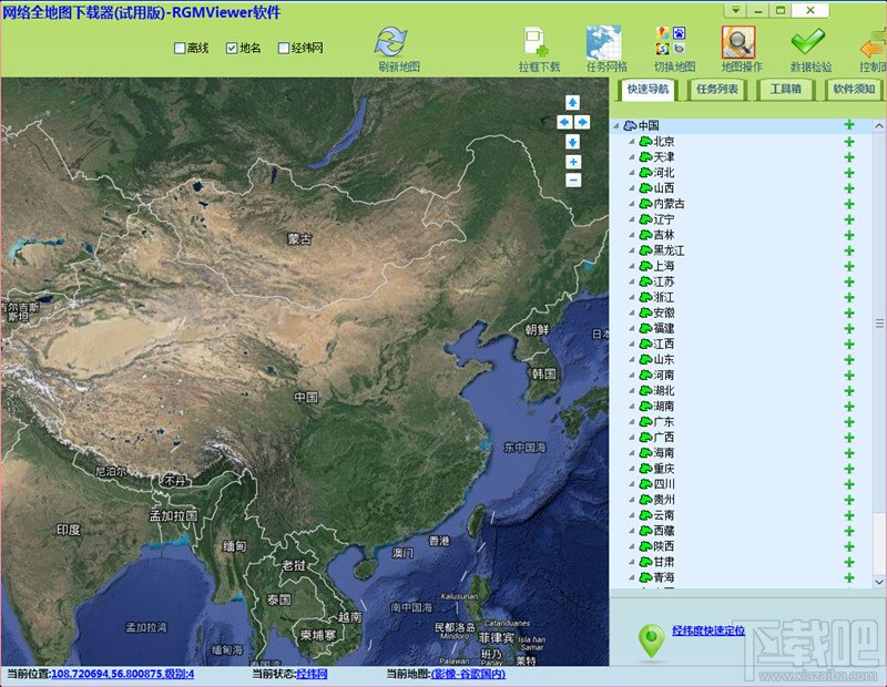 1、软件能下载各种卫星地图、电子地图、地表地形图;