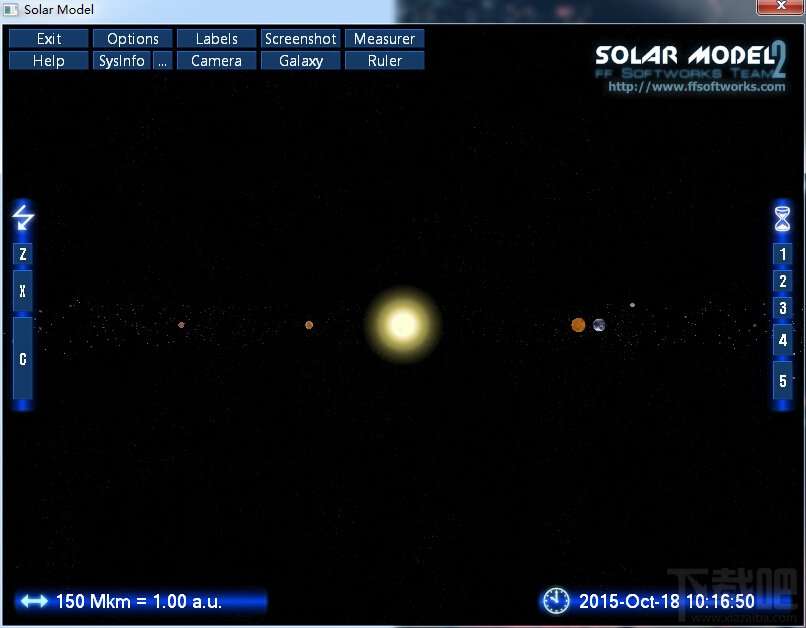 Solar Model绿色版是一个实时的三维太阳系模型,可以显示出各星体的运动情况。你也可以调整时间等参数,观察行星和其卫星的情况。它采用了Irrlicht引擎,可以实现相当高的清晰度。Irrlicht是一个用C++编写的高性能实时的三维引擎,可以应用于C++程序或者.NET语言中。