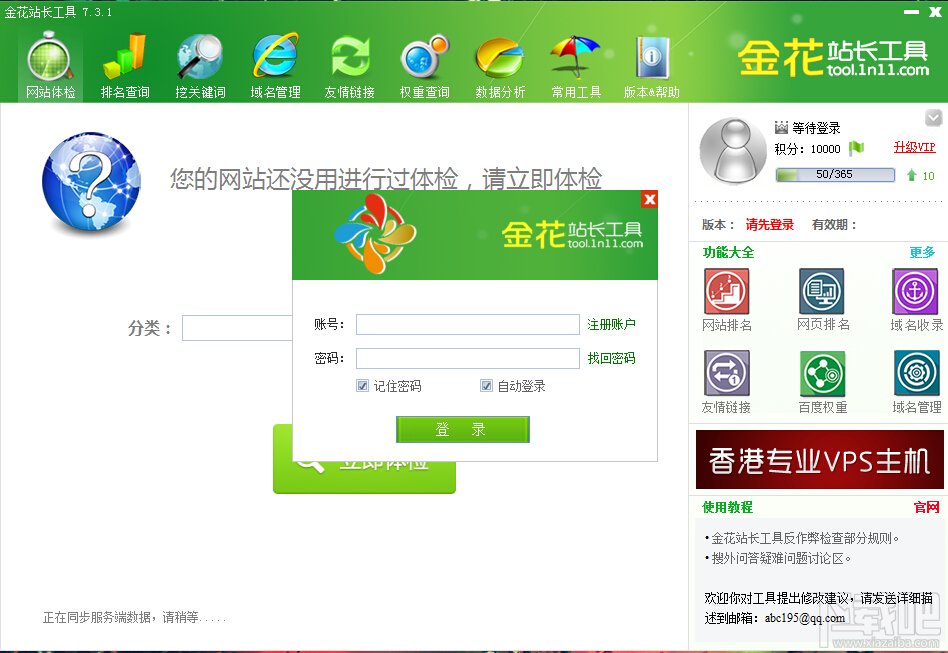 4.56 MB/2020-08-17金花站长工具绿色版是一款站长网站优化工具,同时也是SEO工具,主要是为了方便用户更加准确的查找最适合的关键词,百度指数查询,相关关键词分析工具,长尾关键词挖掘和指数批量查询工具,教你怎么找关键词,长尾关键词挖掘,