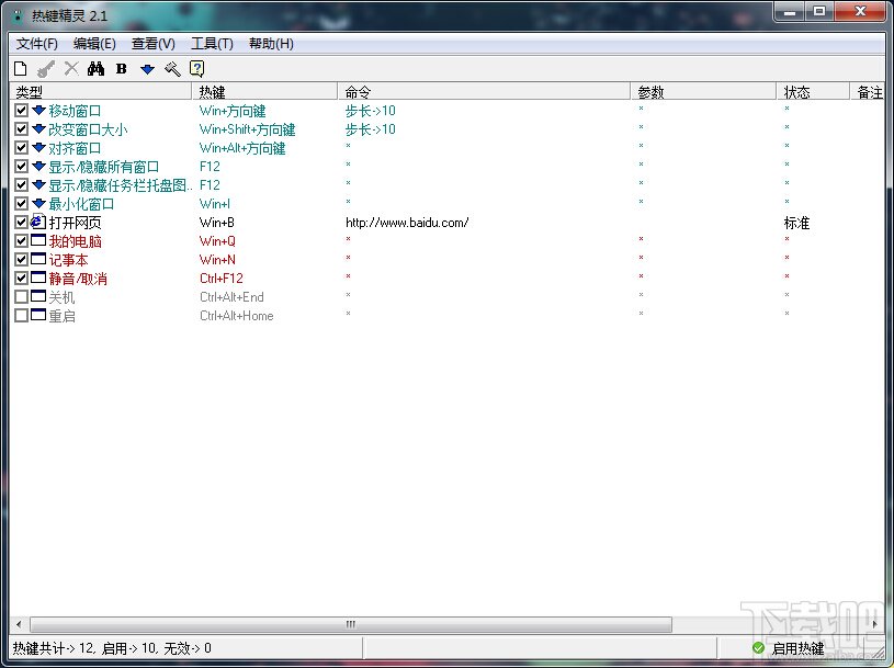 2.要禁用和启用某一个热键,选中或取消项目前的对号即可。