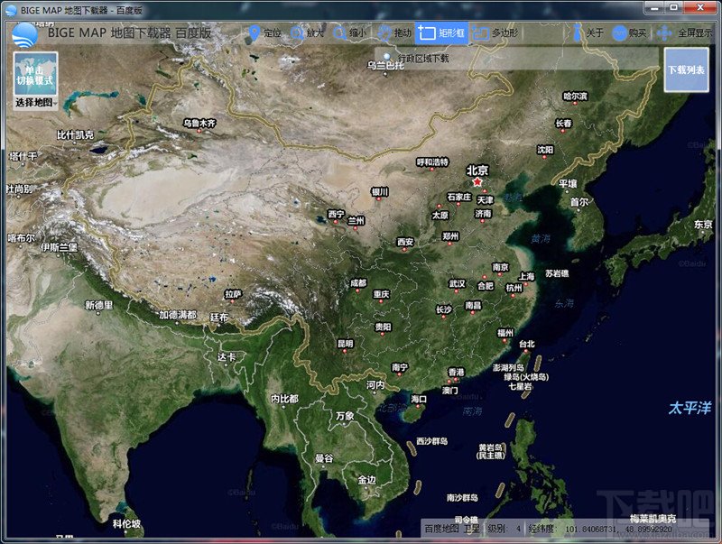 BIG EMAP地图下载器(百度版)是一款地图下载,地图浏览,数据编辑的地理信息系统软件。BIG EMAP是利用百度地图资源,实现从百度地图服务器直接下载卫星图片,高程数据,剖面图,历史像,三维数据,提供实时数据,地图查询,行政区域地图下载。所下载的地图数据没有无水印,支持数据纠偏,支持投影转换,下载的数据可应用于学术科研,工程测绘,城市规划,导航旅游等诸多领域。