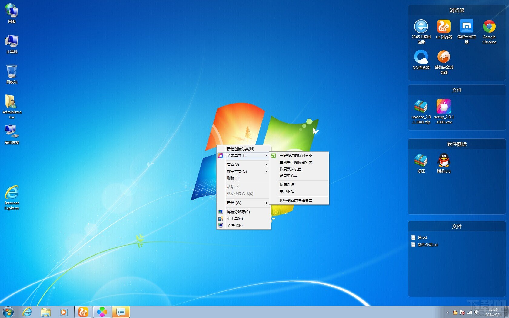 苹果桌面一键整理桌面图标,让桌面瞬间变得井井有条。苹果桌面通过贴片整理对图标进行分类,极速启动,是你桌面管理优秀选择。