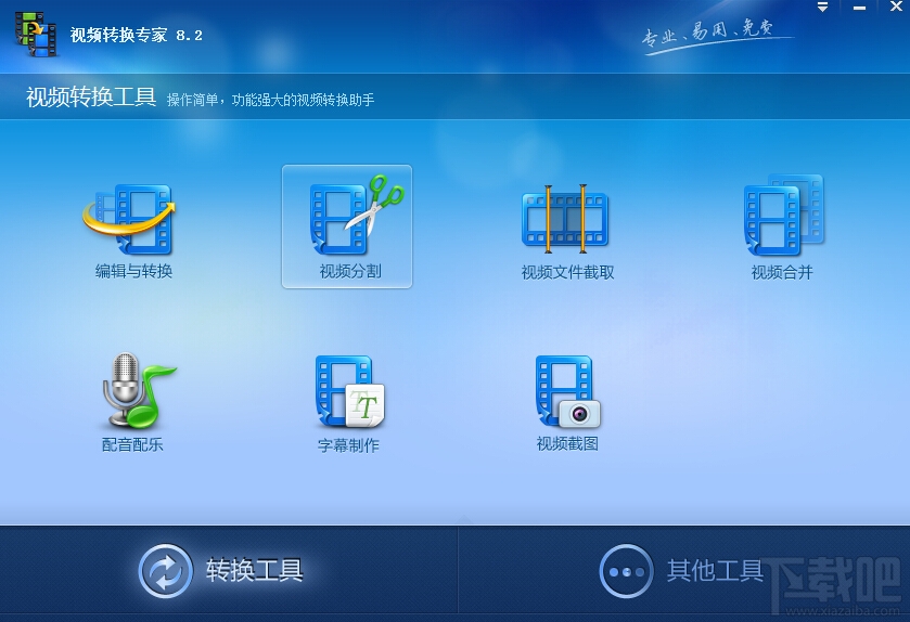 视频转换专家免费版是一款操作简单,功能强大的视频编辑软件。视频转换专家支持MPEG 1/2/4, AVI, ASF, RMVB, FLV, SWF, MP3, MP2, AU, AAC, AC3, M4A, WAV, WMA, OGG, FLAC等主流的音视频格式转换;而且支持音量调节,时间截取,视频裁剪,添加水印和字幕等功能,并可以生成VCD/SVCD、DVD映像文件。