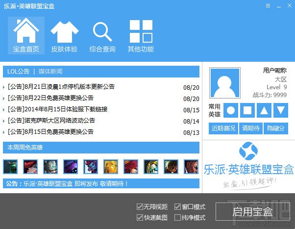 乐派英雄联盟宝盒官方版是一款LOL英雄联盟辅助工具。lol乐派盒子乐派英雄联盟宝盒功能非常强大,拥有游戏资讯、更换皮肤、综合查询以及插件宝盒等辅助功能。有需要的玩家可以马上下载乐派英雄联盟宝盒测试体验一番。