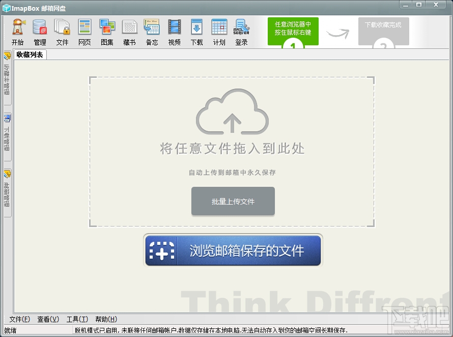 ImapBox官方版是一款高安全性的纯单机版邮箱云存储软件。ImapBox仅和您的email所在的全球各大邮局服务商进行数据上传和下载通讯(Imap全球标准通讯协议),不和其它任何服务器和网络进行通讯。ImapBox不同于其它任何网盘,本身并不提供给您任何数据存储空间。您的存储空间属于您在全球任意邮箱空间的总和。