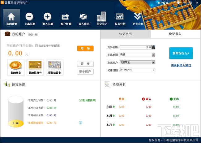 智慧家庭记账软件是一款专门为个人,家庭进行日常记账和理财而设计开发的应用工具,智慧家庭记账软以美观,简捷,快速的操作给个人记账, 家庭记账,家庭理财的朋友带来更多体验,智慧家庭记账软新用户免费注册使用,原有佳盟个人信息管理软件用户账号也能使用。
