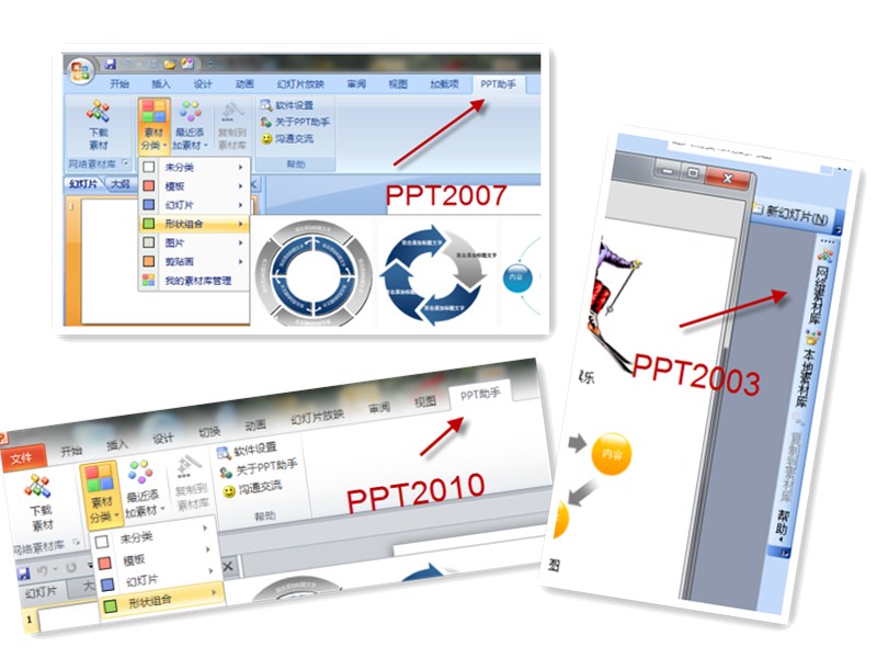 PPT助手官方版是一款专业的PPT素材下载工具。PPT助手会无缝整合到Powerpoint中,同powerpoint 2003/2007/2010紧密结合,并且包含近千套精美PPT模板提供下载,一键下载并安装应用到当前的PPT上。在您制作PPT时,借助PPT助手能快速寻找到其他网友正在分享的PPT素材,为您制作出优秀PPT节省时间!